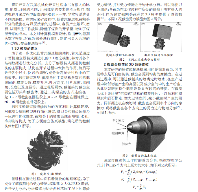 悬臂式掘进机现在广泛应用于煤矿开采。在进行煤层破碎时,由于地质环境的不同!截齿受力也不尽相同。
