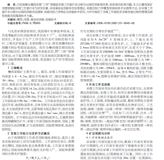 豫西“三软”浅埋薄基岩厚煤层顶板控制技术研究