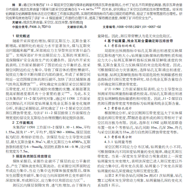 残余瓦斯含量 采空区 卸压排放 煤巷掘进