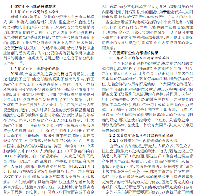 浅谈煤矿企业内部投资的作用