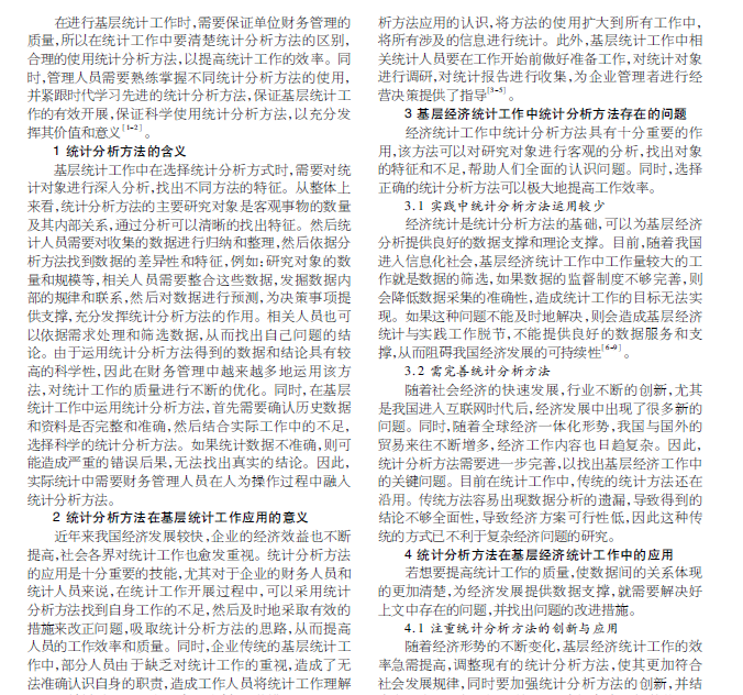 基层经济统计工作指的是对经济相关资料进行收集,整理和分析,是统计工作的基石。