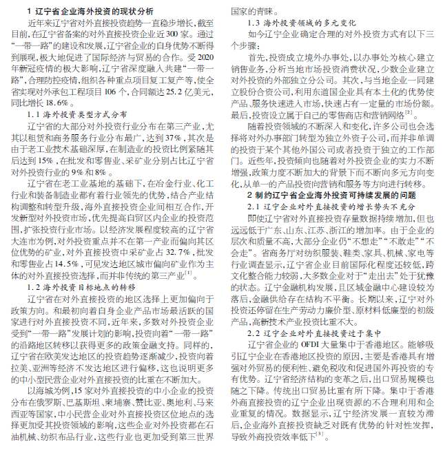 辽宁省企业海外投资可持续发展研究