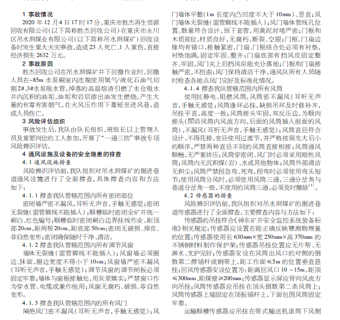 煤矿事故 一通三防 隐患排查
