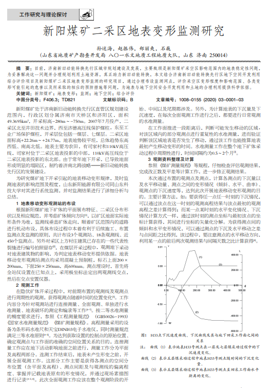 目前,济南新旧动能转换先行区城市规划建设及发展,主要瓶颈是新阳煤矿采空区影响范围内的地表稳定性问题, 为妥善解决这一问题并合理规划利用土地资源,真正助力新旧动能转换,本文结合济南新旧动能转换先行区地下空间开发利用 综合评价项目及新阳煤矿二采区地表变形监测的研究项目,通过合理布设监测网点,评价采空区变形程度和影响范围、各类变 形可能引起的危害以及所采取的相应的预防措施等问题,为地表与地下空间安全开发利用和土地的合理利用提供科学依据。