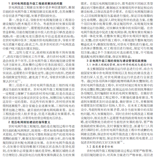 随着社会经济科技的快速发展,在现代化发展过程中,农电网升级工程为适应农村发展需求得到逐渐推进。