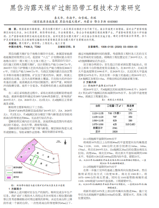 根据最新补勘数据,黑岱沟露天煤矿二条区煤层向推进方向不断下扎,高台阶高度日渐增高,届时会严重影响抛 掷区的钻孔作业,加之陷落带、断陷带的存在,作业难度增大,势必会导致抛掷区根底频繁产生,严重影响原煤及拉斗铲的接 续,且严重影响断陷带区域的边坡稳定性。故研究黑岱沟露天煤矿二采区高台阶降段实施方案,确定合理的高台阶厚度,拉斗 铲及采煤接续以及北部端帮运输路的布置等都是黑岱沟露天煤矿急需解决的问题。