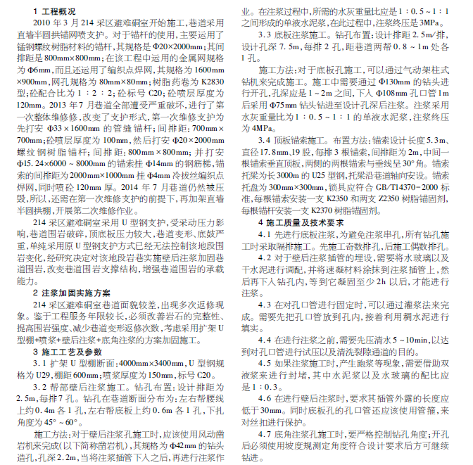 鹤煤六矿214采区避难硐室注浆加固技术实践