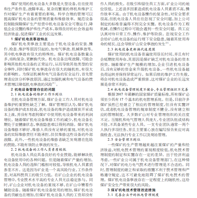 煤矿机电设备在煤矿生产的各个阶段中起着越来越重要的作用。