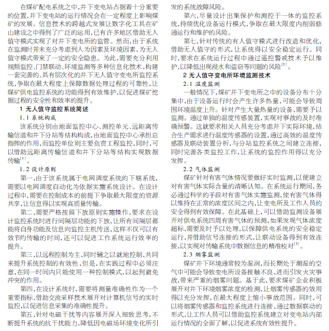 为了切实提高煤矿井下采区变电运行的稳定性,提升变电所无人值守的安全性和可靠性,需要充分运用自动化技术展开对采区变电的积极改造。