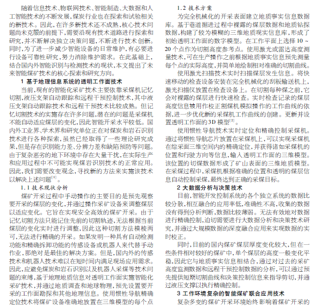本文在分析煤矿智能化采矿技术的研究现状时,指出我国煤矿智能化采矿技术的研究大多处于初级阶段,并提出了一些建议。