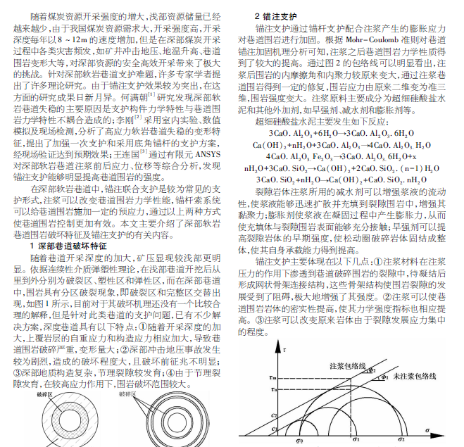针对深部巷道支护难题,近年来锚注联合支护已在该类巷道支护中取得成效。