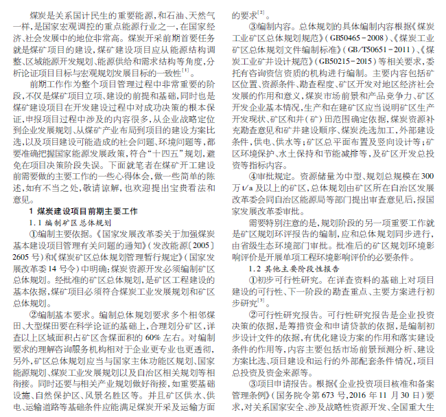 关于煤炭建设项目 前期部分工作内容的几点总结