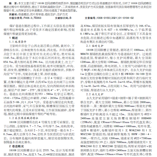 巷道掘进 防片帮举措 临时支护