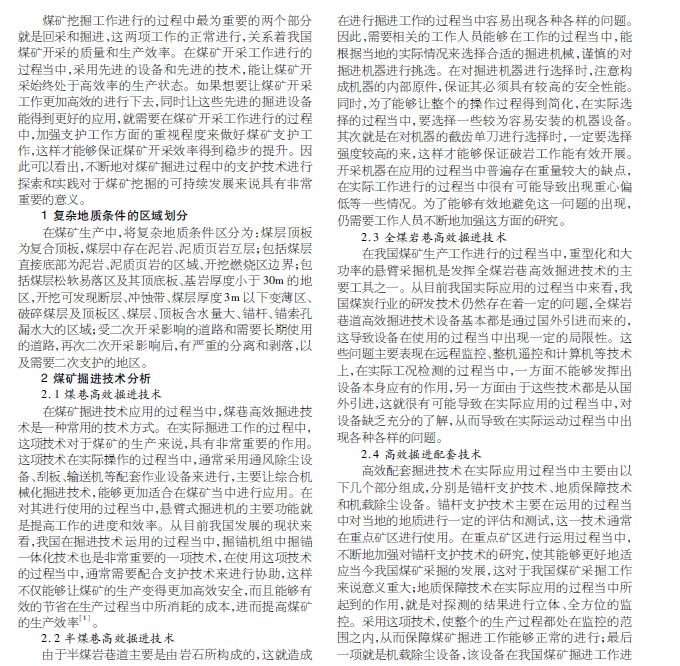 复杂地质条件下煤矿掘进支护技术实践分析