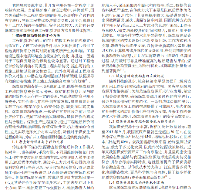 在煤炭资源领域,实际勘查阶段地质评价工作的开展,会在一定程度上影响煤炭开采方法,支护材料与设备选择存在差异,对于矿井建设工程所产生的影响也十分显著。