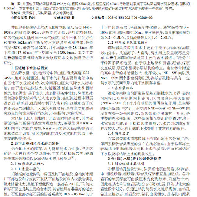 新疆准南煤田玛纳斯县天欣煤矿水文地质特征