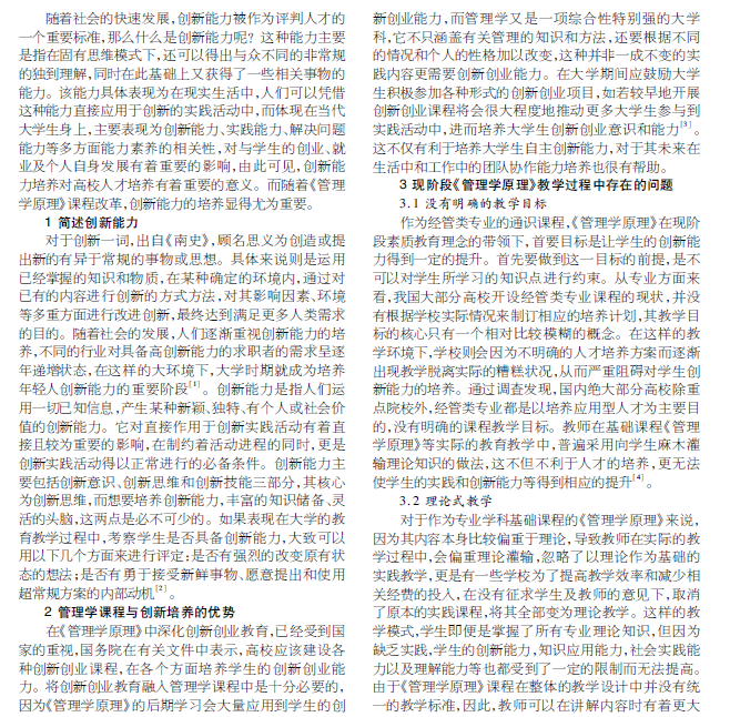 创新能力培养的《管理学原理》课程改革分析