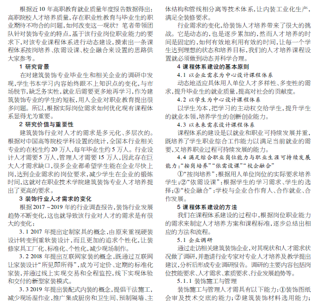 基于岗位职业能力分析的 建筑装饰专业课程体系建设的思考
