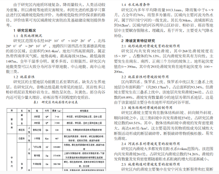 本文以四川凉山彝族自治州热水河流域所发育的滑坡为研究对象,首先对研究区内的滑坡影响因素进行探索,然 后构建 LightGBM 模型对研究区内的滑坡危险性进行评价,获得该区域的滑坡危险性区划图。