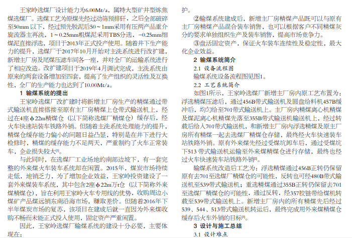 本文从王家岭选煤厂输煤系统的建设必要性入手,简单介绍了工艺系统,总结了设计及施工难点,并分享了经验, 以期发挥提高 EPC 管理项目的管理优势,提高企业综合效益。
