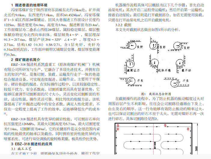 现阶段在我国煤矿大断面的岩巷掘进中最常用的方法是钻爆法,然而该方法是一种机械化程度较低的掘进方法, 一旦面临过长的巷道,会导致施工工期过长,掘进效率低下。为了克服传统钻爆法的缺陷,需要利用 EBZ-318 掘进机施工矿井 采区开拓大巷工程。