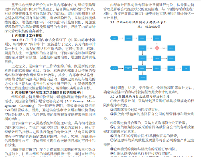随着全球经济一体化的快速发展,在集团化采购管控模式与多板块产业链资源整合协同的迫切需求下,要更高效 地构建新形势下的供应链体系,必须对现有采购管理体系进行诊断和评价。内部审计运用科学、合理的审计方法识别内控缺 陷、评估风险水平、协助组织管理运营风险,在保障供应链平稳高效地运作方面,有着越来越多的成长空间。