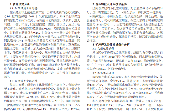 陶和勘查区煤炭资源丰富,是新疆阿勒泰地区主要煤产地之一。本文通过分析国际国内煤炭资源形势、勘查区资 源特征、开采技术条件、矿床开发外部建设条件,设计矿山开发建设方案,对陶和勘查区煤炭经济意义进行了概略研究。