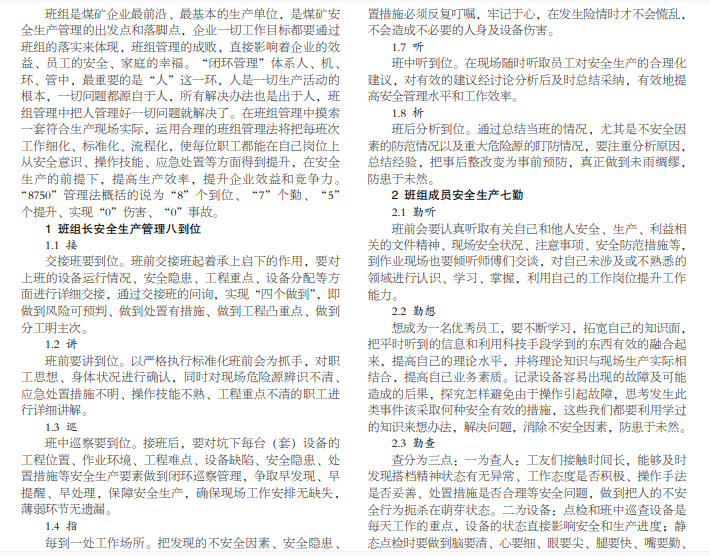 在露天煤矿班组管理中,提升人的各方面能力是提高煤矿安全指标、任务完成率、经济效益、竞争力的重要前提, 本文主要对露天煤矿班组管理中班组长应做到什么、班组成员应如何去做、两者协作后得到什么提升、达到什么目标进行探索, 保证在安全生产的前提下,提高生产效率,提升企业效益和竞争力。