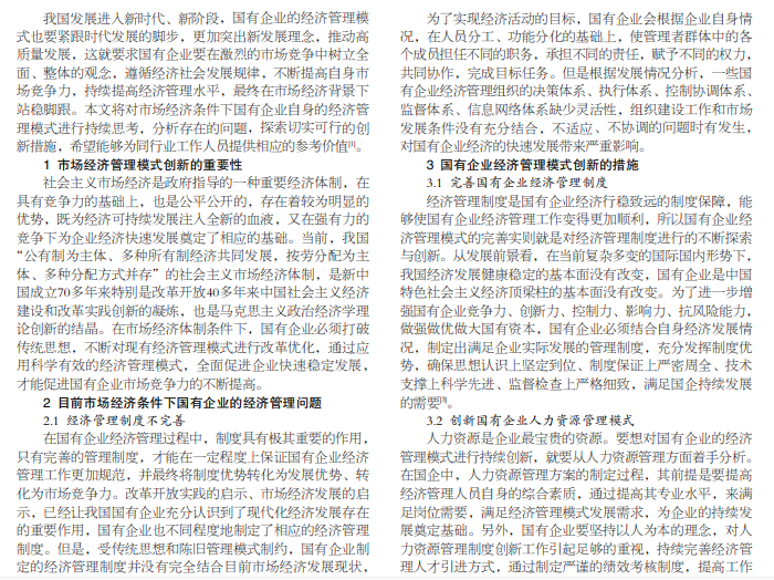 国有企业是中国特色社会主义的重要物质基础和政治基础,是我们党执政兴国的重要支柱和依靠力量。新中国成 立以来特别是改革开放以来,国有企业发展取得巨大成就,为我国经济社会发展、科技进步、国防建设、民生改善作出了历史 性贡献,功勋卓著,功不可没。随着市场经济体制改革,很多私企和外企已经得到不同程度的发展壮大,对国企的经济主导地 位带来了较大的影响。另外,国有企业一些固有的经济管理方式也在一定程度上阻碍了其自身发展。国有企业需要创新经济管 理模式,推动国有企业提高管理水平,进一步做强做优做大。