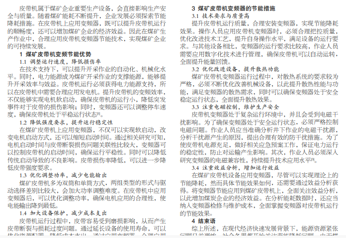 煤矿皮带机;变频器;节能