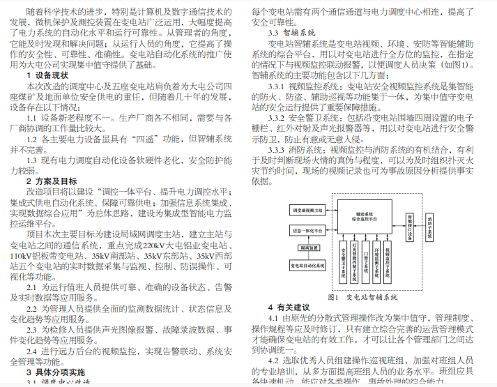 本文主要通过对调度中心、调度数据网、远动信息系统、智辅系统等改造,在功能上实现五个变电站的实时数据 采集与监视、控制功能、防误操作功能、可视化功能等;在管理上能及时发现和解决问题,减少对电气一、二次设备的维护维 修;在运行上提高了操作的安全性、可靠性、准确性,并能更快捷方便地获得变电站运行数据。文章通过对改造项目探讨分析, 提出了设想及建议,旨在为本次改造提供一些参考意见。