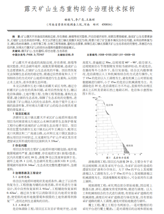 矿山露天开采造成的高陡边坡,存在滑坡、崩塌等地灾隐患,并且会破坏地形、地貌及景观植被,造成矿山生态要素缺失,打破矿山生态系统的平衡。