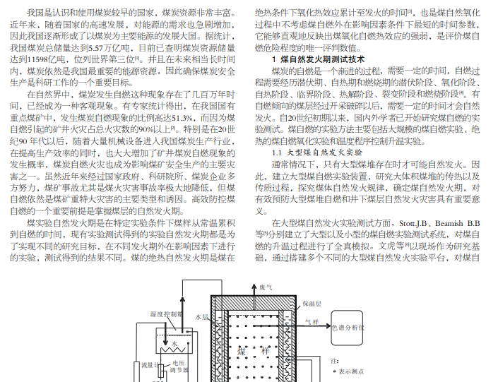 煤的绝热自然发火期是评价煤自燃危险程度的唯一评判数值。通过整理国内外煤自然发火期测试技术,对大型煤 自然发火实验、煤绝热自然氧化实验以及程序控制引领升温实验三大实验方法进行分析对比,并总结了各自的优缺点,期望能 够为有效实现煤的绝热发火期的快速测定起到帮助作用。