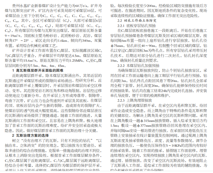 本文针对近距离高瓦斯煤层群开采过程中的瓦斯治理技术进行研究和总结,通过采取“以抽治本,立体消突”的 瓦斯综合治理技术,以多途径的综合抽采措施,克服单一措施造成的治理不到位。从根本上消除突出危险性,实现高瓦斯煤层 群的安全高效开采,为类似矿井瓦斯治理提供参考经验。