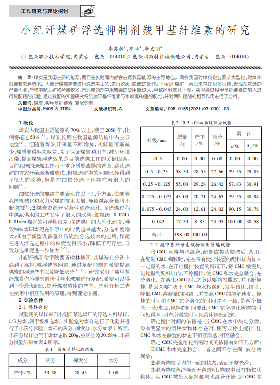 小纪汗煤矿浮选抑制剂羧甲基纤维素的研究