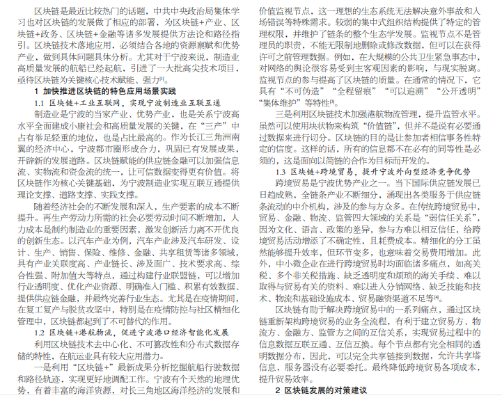 随着宁波经济总量进入“万亿俱乐部”,在计划单列市名列第二,发展方式逐步迈向了一个高质量发展阶段,高质 量发展呼吁培育新的产能和产业能级。大城市的治理期待“全周期管理”,而区块链对新时代打造面向最新互联网的基础设施具 有重大的意义,出现了催生区块链在政务、金融和制造业等全新的应用场景。