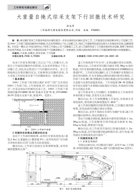 大重量自掩式综采支架下行回撤技术研究