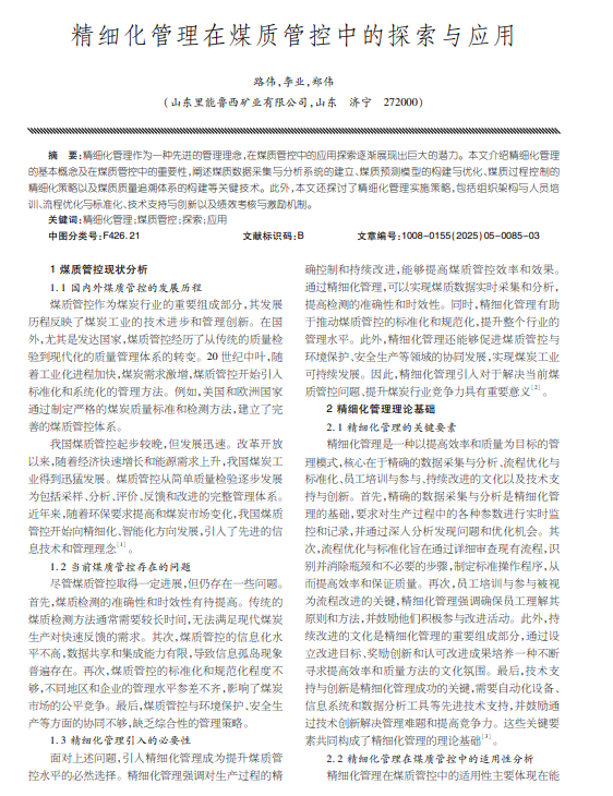 精细化管理作为一种先进的管理理念,在煤质管控中的应用探索逐渐展现出巨大的潜力。