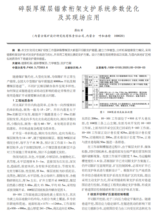 碎裂厚煤层锚索桁架支护系统参数优化及其现场应用