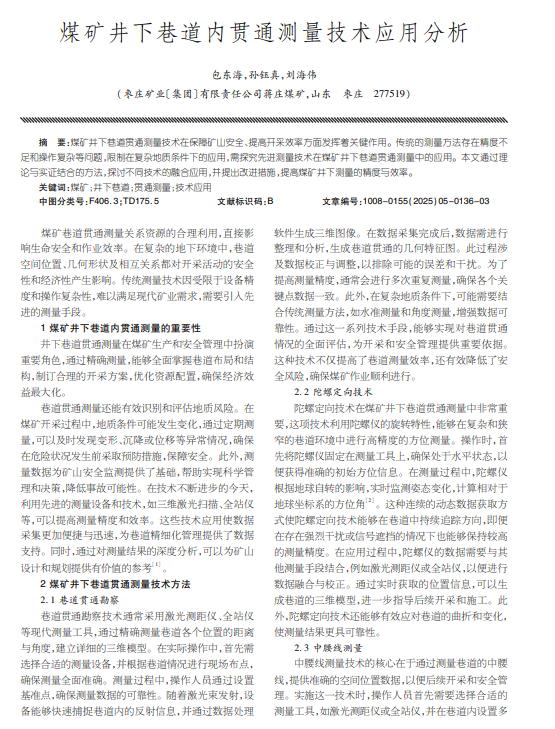 煤矿井下巷道贯通测量技术在保障矿山安全,提高开采效率方面发挥着关键作用。