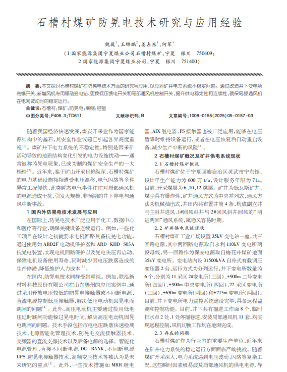 本文探讨石槽村煤矿在防晃电技术方面的研究与应用,以应对矿井电力系统不稳定问题。