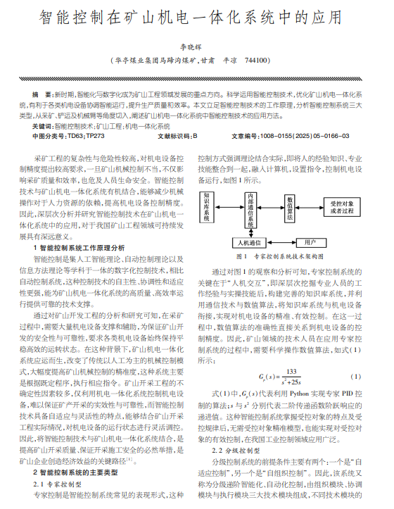 智能控制技术;矿山工程;机电一体化系统