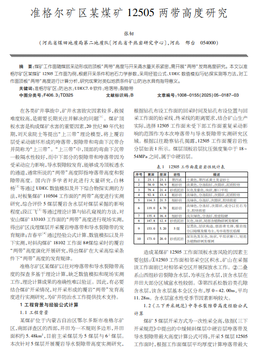 煤矿工作面随煤层采动形成的顶板“两带”高度与开采涌水量关系紧密。