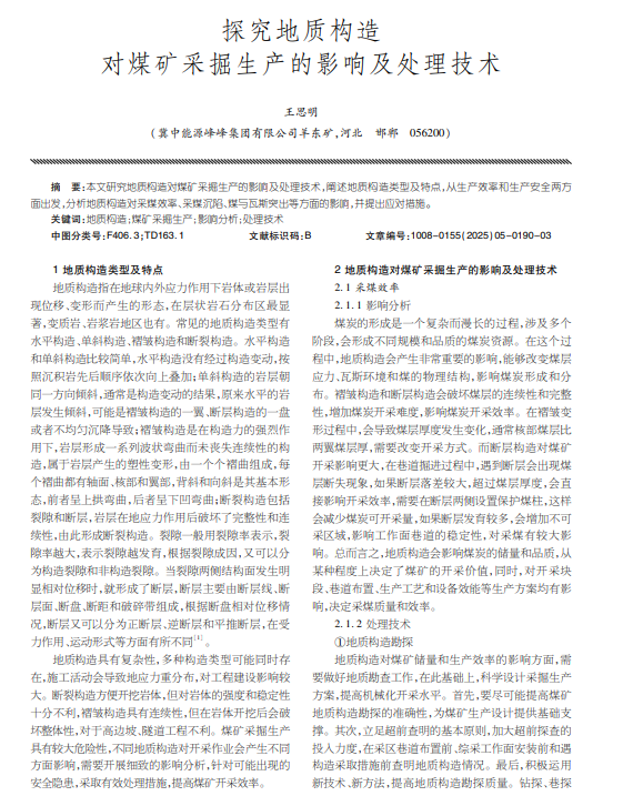 探究地质构造 对煤矿采掘生产的影响及处理技术