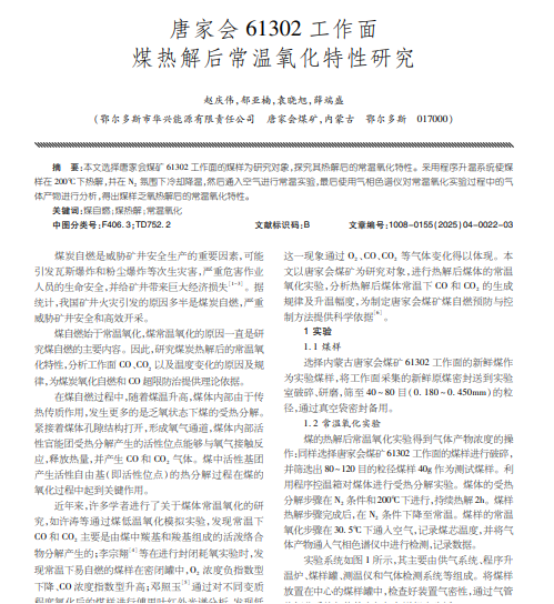 本文选择唐家会煤矿61302工作面的煤样为研究对象,探究其热解后的常温氧化特性。
