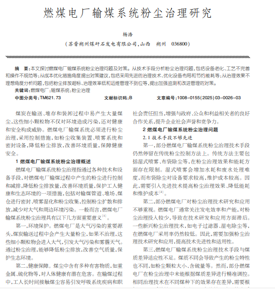 燃煤电厂输煤系统粉尘治理研究