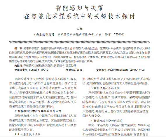 智能感知与决策在智能化采煤系统中的关键技术探讨
