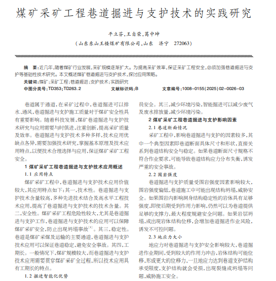 煤矿采矿工程巷道掘进与支护技术的实践研究