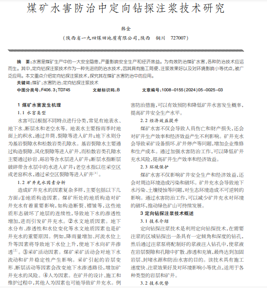水害是煤矿生产中的一大安全隐患,严重影响安全生产和经济效益。