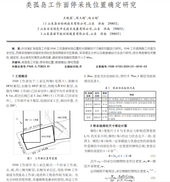 针对某矿类孤岛工作面3310工作面停采线位置和合理煤柱尺寸确定问题进行研究。